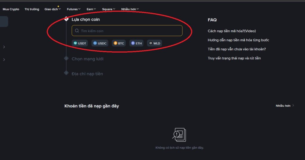 2. Hướng dẫn gửi (Deposit) tiền điện tử lên sàn giao dịch