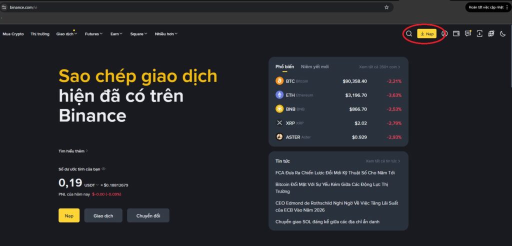 Ví dụ minh họa sử dụng sàn Binance, nhưng nhìn chung các sàn khác như OKX, Bybit, KuCoin đều tương tự.
