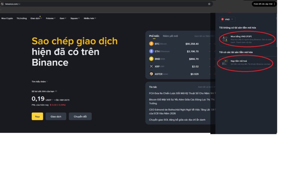 Sau đó chọn nạp tiền mã hoá hoặc nạp bằng vnđ