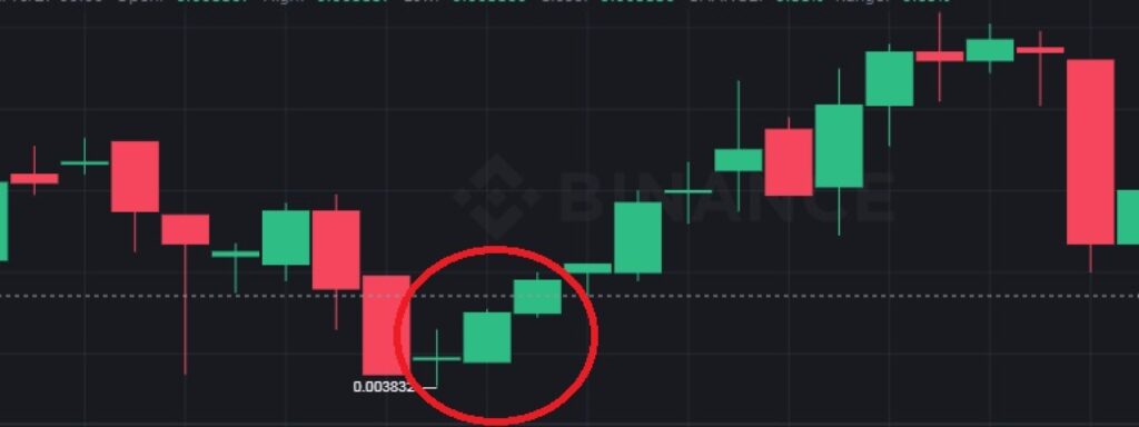 - Three White Soldiers: Ba nến tăng liên tiếp, mỗi nến đóng cửa cao hơn → tín hiệu tăng mạnh.
