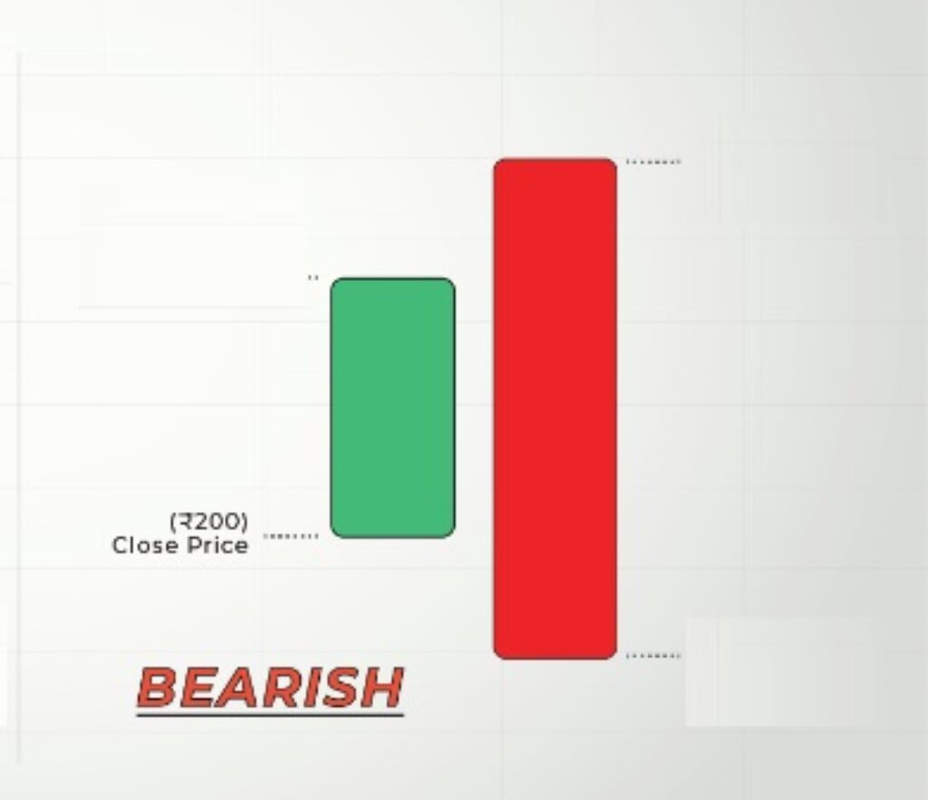 - Ngược lại với mô hình trên: nến đầu tăng, nến sau giảm mạnh và bao trùm nến trước.