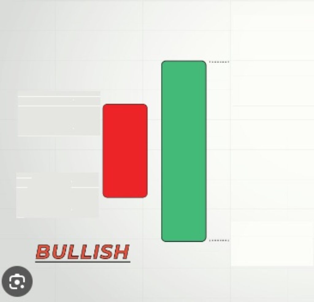 - Gồm hai nến: nến đầu giảm, nến sau tăng mạnh và bao trùm toàn bộ thân nến trước.