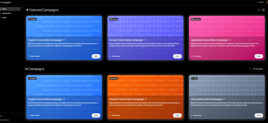 Hiện tại, dự án đã ra mắt Poseidon V1 – sản phẩm cho phép người dùng đóng góp dữ liệu bằng giọng nói. Khi tham gia, bạn sẽ nhận về điểm thưởng, đây cũng là cơ hội để săn airdrop từ Poseidon trong giai đoạn đầu.
