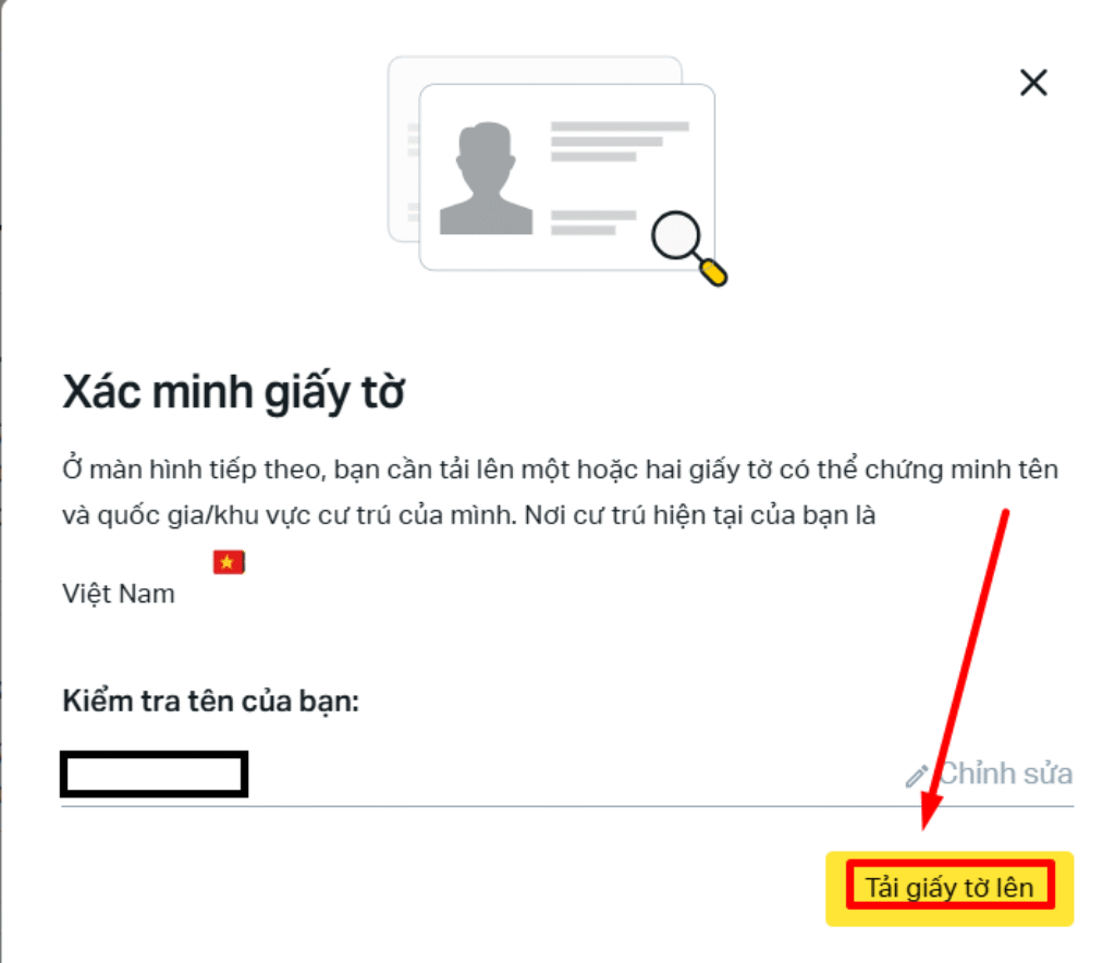 – Nhấn vào “Tải giấy tờ lên” để bắt đầu xác minh.