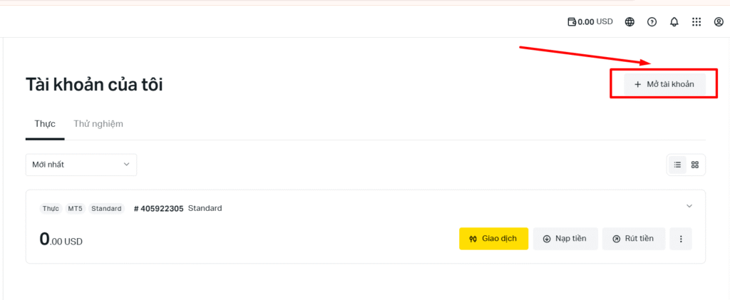 – Sau khi xác minh thành công, bạn có thể mở thêm tài khoản giao dịch mới.