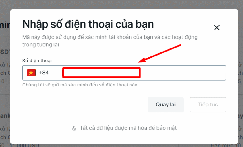 + Xác minh Số điện thoại: Bạn nhập số điện thoại của mình vào ô bên dưới.