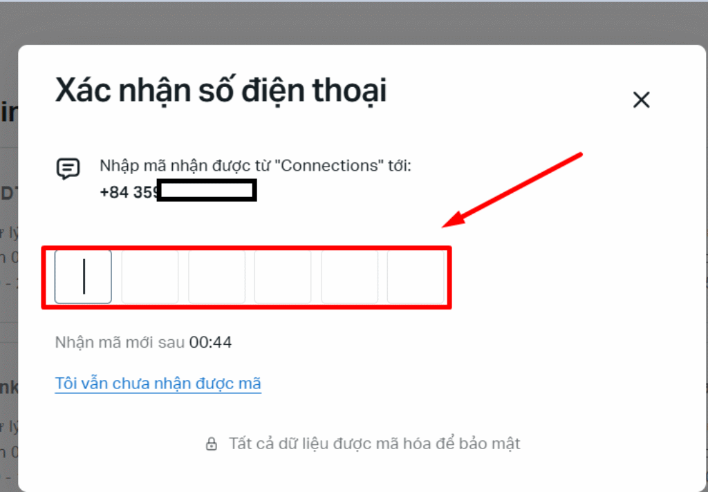 Sau đó mã OTP sẽ được gửi về SMS cho bạn. Bạn dùng mã đó nhập vào như ô bên dưới